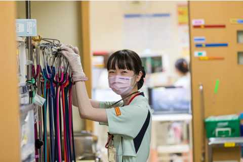 看護師様のサポートをさせていただきます。導入していただいた病院からは心地よい挨拶や積極的な声掛け、気配りによって看護師様含め病院内のスタッフが仕事に専念しやすくなったとのお声も多数頂いております。